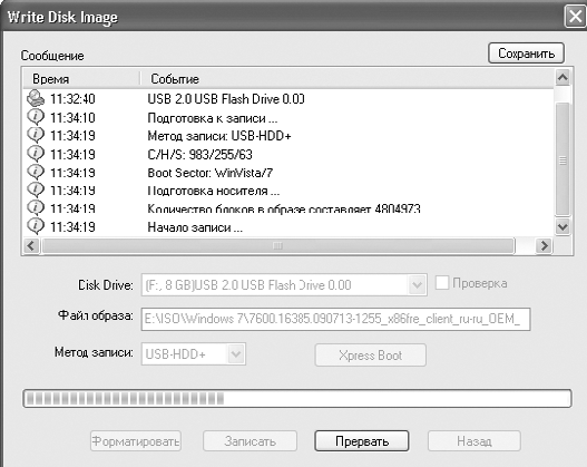 Когда запись данных закончится, можно переходить к установке операционной системы (об этом читайте в главе 4).