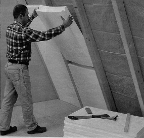 Обшивают стены мансарды вагонкой, плитами ДСП и ДВП, листами сухой штукатурки и т. п. Технология работ такая же, что и при устройстве каркасных конструкций. При утеплении скошенных участков потолков имейте в виду: кровля тут должна выполняться по сплошной обрешетке.