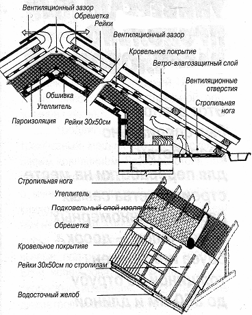 6 – утеплитель для труб и тезхнических коммуникаций, пожаробезопасный и электроизоляционныйУтепление, гидроизоляция и вентиляция кровли, особенно если у вас мансарда с жилым помещением, требует особой тщательности. Наряду с теплоизолирующими материалами рекомендуется двойной слой влагозащитного покрытия, который и снаружи, под самым кровельным покрытием, и изнутри, поверх слоя утеплителя, создает прослойку, совершенно непроницаемую для влаги и холода. Правда, для этого можно использовать толь или рубероид и даже полиэтиленовую пленку, но если вы строите надолго, имеет смысл потратиться на качественный изоляционный материал (рис. 9).