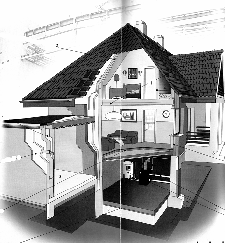 Современная промышленность выпускает изоляционные материалы самого различного назначения, которые позволяют утеплять любые участки здания. Это плиты, маты, покрытия, экранированные фольгой или водонепроницаемой пленкой – все это не слишком экономит средства, но значительно сокращает сроки строительства и повышает качество. Хорошая теплоизоляция – это сэкономленные энергоносители, и то, что вы вложите сегодня, купив качественный утеплитель, к примеру, для крыши, завтра вернется к вам в виде сэкономленных киловатт электроэнергии или кубометров дров, угля или газа. Не говоря уже о комфорте, отсутствии труднообнаруживаемых щелей, через которые проникает холодный воздух, защите от разрушения, промерзания и осадков не только конструктивных элементов здания, но и его внутренней отделки. На рис. 7, 8 вы видите места утепления и гидроизоляции дома, а также рекомендуемые для этого современные материалы.