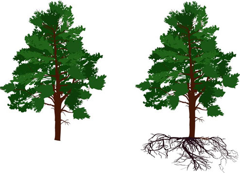 Если нас попросят представить себе дерево, то большинство вообразит его в виде левого рисунка, однако более правильным и полным является вариант, который справа.