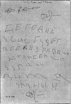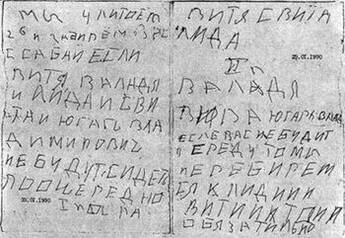 Рис. 35, 36. Фрагмент последнего послания новогиреевского полтергейста: в конверте и на пяти страницах.