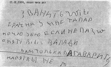 Последующая переписка была сосредоточена в основном на персоне В.Н.Травина. Около часа дня 21 января появилась записка такого содержания: «Звонить Вите срочно у нас топор ночью убью если не позвоните Вите и Володе нам только поговорить». Чуть позже пришла другая: «Мы вас заберём 26 если сегодня Володя и Витя не будут с нами говорить в туалете по хорошему а то начнём по плохому ясно вам всем».