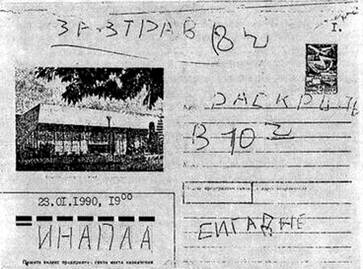 Несколько пояснений: «сидеть поочерёдно» мы должны были в туалете, причём не парами, а тройками. Володя и Лида — родственники хозяйки, Вера и Света — мать и дочь, живущие в этой квартире. Югарь Владимирович — это я. Любопытно, что, как летом 1991 года сообщил мне А.К.Прийма, в одном из его последних контактных экспериментов контактёр, ничего не ведавший ни об этой записке, ни обо мне, почему-то тоже назвал меня «Югарь Владимирович». Но это так, к слову.