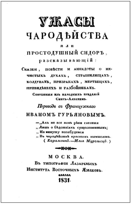 Ужасы чародействаСказки, повести и анекдоты о нечистых духах, страшилищах, колдунах, призраках, мертвецах, привидениях и разбойниках