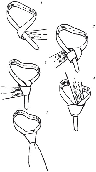 3. Поверните широкий конец вправо, пропустив его под узким концом.