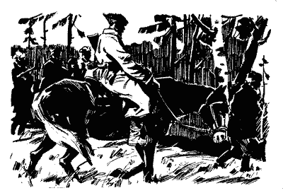 Ніхто не встиг зміркувати, що сталося і з якого боку небезпека. Не добігши до шосе, одні попадали на землю, інші заховалися за деревами. Єгоров так гикнув на коней, що вони занесли його в саму гущавину кущів. Миколка і Вітя кинулися в канаву. Федя залишився стояти за деревом, напружено вдивляючись у шосе.
