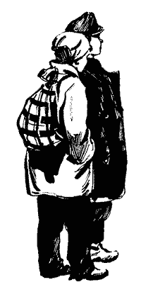 Вигляд у поліцаїв був жалюгідний. Один, високий, з маленькою пташиною головою і вузькими плечима, нетвердо ступав довгими ногами, другий, низький, сутулий, дріботів поряд, жваво жестикулюючи: очевидно, наводив якісь нові докази.