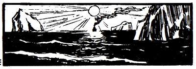 птицы провожают нас и, когда надоедает им парить над нашими головами, усаживаются на носу корабля, на баке. Отдыхают.Сияя несказанной чистотой, величественные, словно лайнеры, плывут навстречу и постепенно пропадают за кормой бело-голубые айсберги. Во второй раз одну и ту же ледяную гору не увидишь: с юга на север айсберги не возвращаются.
