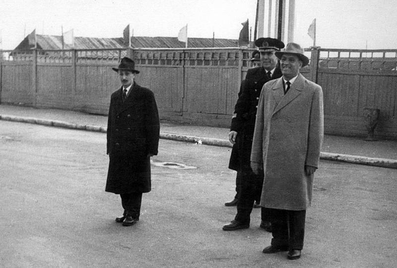 Руководство Северного морского пароходства. Слева направо: председатель Севбаскомфлота Ф.С. Караканджи, начальник Северного морского пароходства С.И. Кузнецов, секретарь парткома Л.П. Воронцов. Архангельск. 1956 г.