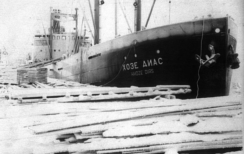 Пароход «Хозе Диас» под погрузкой на лесозаводе № 23. Назначение – в Калининград