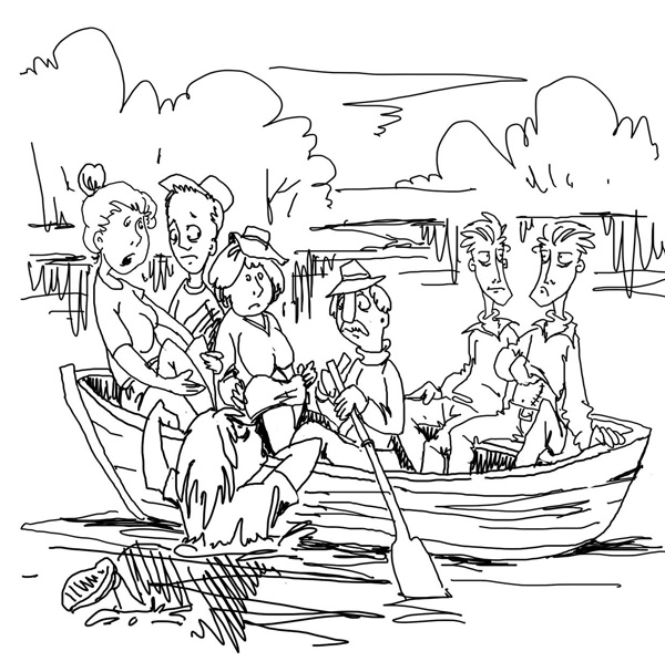 – Слушай мою команду: мужикам грести до потери сил! Женщинам выгребать воду. Опять заштормило!