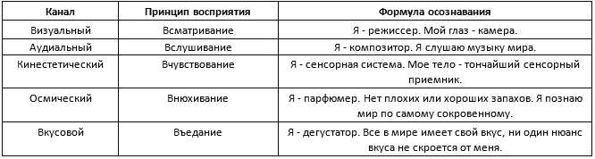 Сенсорные каналы. Вы уже определили свой основной канал восприятия. Эго дает вам возможность усилить его деятельность.