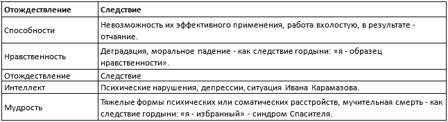Обратимся к нашему списку Эго и определим, какие Дуальные оппозиции возможны в случае превышения некоего допускаемого «коэффициента привязанности» к тому или иному аспекту.