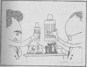 Когда отложенная позиция для Ботвинника безотрадна и играть предстоит недолго, он оставляет термос дома. Всеведущие любители знают об этом и с трепетом ждут появления своего кумира: если идет с термосом, будет сопротивляться, если пустой – шансов на защиту нет. Впрочем, и боги ошибаются: зафиксированы случаи, когда безнадежная позиция в результате ошибки противника оказывалась совсем не безнадежной. Тут уж приходилось играть без кофе или заказывать его в буфете!