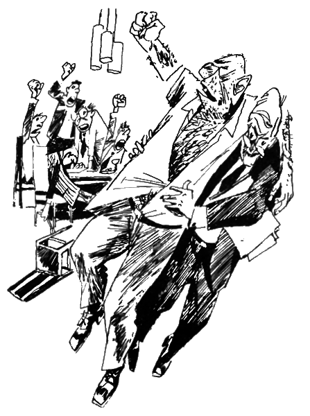 Между тем за столиком в углу уже началась пьяная драка. С ужасом Семен Никифорович заметил, что его кумир терпит урон и вот-вот будет повержен в прах. Какая-то непреодолимая сила подняла тихого, маленького Василькова со стула.
