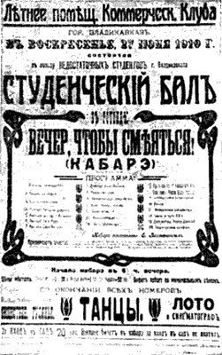 Но традиционный студенческий вечер прошел под режиссерством Вахтангова необычно. Это было кабаре — «вечер, чтобы смеяться».
