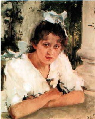 Да и в этих портретах Серов как бы устраивает диалог с самим собой. Девушка, освещенная солнцем (портрет Марии Яковлевны Симонович), созданная в Домотканове (имении друга Серова Владимира Дервиза), написана совершенно по-иному, чем Девочка с персиками. Здесь иной возраст модели, иной темп жизни, иная пластика и другая живопись - не стремительная и подвижная, а плотная