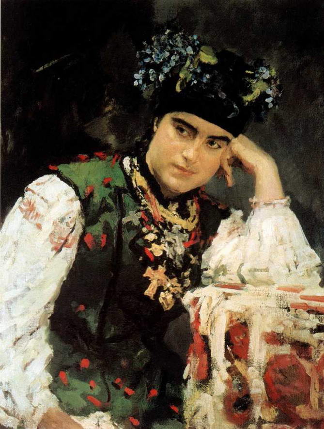 Среди портретов, написанных в конце 1880-х годов, портрет Софьи Драгомировой - своеобразное свидетельство роста серовской славы. Софья Михайловна Драгомирова (в замужестве Лукомская) рассказывала Игорю Грабарю, как, позируя Репину для портрета в малорусском костюме, она познакомилась с Серовым, зашедшим в мастерскую к учителю. Серов попросил разрешения тоже писать ее портрет во время сеансов у Репина. Серовский портрет, вместе с работой Репина, долгое время находился в доме генерала Драгомирова, отца Софьи Михайловны, в Киеве. «Гости, - пишет Грабарь, - всегда справлялись о репинском портрете: “Говорят, у вас есть замечательный портрет вашей дочери, написанный знаменитым Репиным?” Гостя водили показывать портрет. “А это кто писал?” - спрашивали обыкновенно, указывая на висевший тут же серовский портрет. “Это так, один ученик Репина”. На это следовало равнодушное “а-а!”. Несколько позже имя этого ученика уже громко называлось, а еще через некоторое время приезжие из столиц прежде всего осведомлялись: “А скажите, правда, что у вас есть прекрасный портрет Серова с Софьи Михайловны?” И уж потом спрашивали, останавливаясь перед репинским: “А это чей?”»