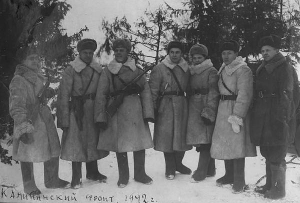 Отец (в центре с автоматом) на Калининском фронте. 1942 г.