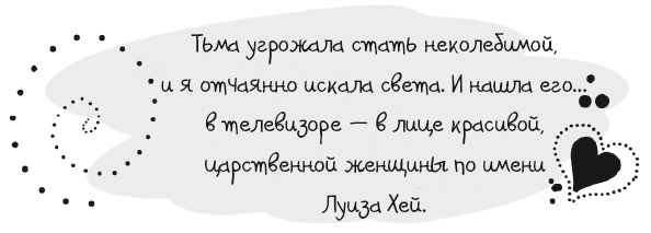 интервью, которое брала у нее Опра Уинфри, Луиза убедительно говорила о любви и доброте. У нее оказался спокойный, утешающий голос любящей матери; ее безмятежная уверенность задела в глубине моей души тайные струны. В то время как все остальные твердили только о сухой статистике, скверных исходах и изнурительном лечении, она осмелилась нести весть об исцелении и цельности: «Все хорошо», «Это переживание приведет только к благу», «Все складывается к моему наивысшему благу», «Я в безопасности». То был лучик света, который я искала и на который надеялась. Когда я слушала Луизу, у меня возникло такое ощущение, будто угасший было огонек внутри меня теперь вновь разгорелся. Я откуда-то знала, что его можно раздуть в пламя надежды и силы – я могла восстать из этого пепла и шагнуть вперед, в здоровую новую жизнь.После того как интервью закончилось, я с головой погрузилась в применение аффирмаций, востребуя для себя совершенное благополучие и перманентное исцеление как свое Божественное Право. По мере того как я больше узнавала о взглядах Луизы на исцеление, здоровье, изобилие и любовь, с моих глаз как будто сдергивали пелену. И то, что под ней открылось, было прекрасной тайной, программой разгаданных загадок и разделенной мудрости.