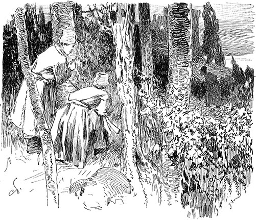 Тут снял он с себя пояс, бросил вниз саблю, чтоб не звенела, и, ухватясь за ветви, поднялся вверх. Окошко все еще светилось. Присевши на сук, возле самого окна уцепился он рукою за дерево и глядит: в комнате и свечи нет, а светит.