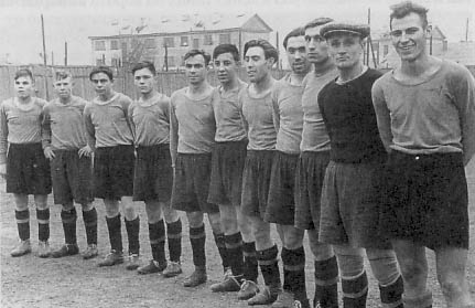 И стал я играть по очереди за все юношеские команды на позиции центрального нападающего. Соперникам по четырнадцать-пятнадцать лет, а ворота мужские. Как получу мяч возле штрафной, в сторону чуть откачу и верхом бью с двадцати-тридцати метров. За сезон забивал больше тридцати мячей. А в сорок девятом, по-моему, наколотил аж пятьдесят шесть голов. На стадионе даже выпустили стенгазету с дружеским шаржем – я со здоровенной бутсой на ноге во весь рисунок. Поставили за молодежную, я и там забивал. И тогда уже решили выпускать меня сразу за первую мужскую, потому что она давала больше всех очков в клубную копилку. Было мне семнадцать лет. Пришлось довольно тяжело, потому что били меня мужики нещадно. Но, с другой стороны, с раннего возраста учился отбиваться.