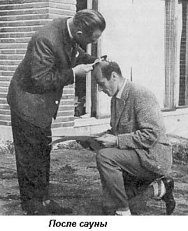 Обыграли мы финнов, нас повели в сауну. И там финскому самолюбию был нанесен еще один удар. Толстый банщик нам что-то лопотал, и выяснилось, что у него сауна особая, то есть очень жаркая. И тому, кто выдержит сто градусов, он выдает специальный диплом. Эка невидаль. У нас человек пять честно отсидело положенное время. Другие просто не захотели. А меня – хлебом не корми, я коллекционирую такие филькины грамоты. До сих пор где-то валяется «В присутствии истопника такого-то, при температуре сто градусов по Цельсию, господин Бубукин высидел в сауне пять минут». На финском языке, мне переводили.