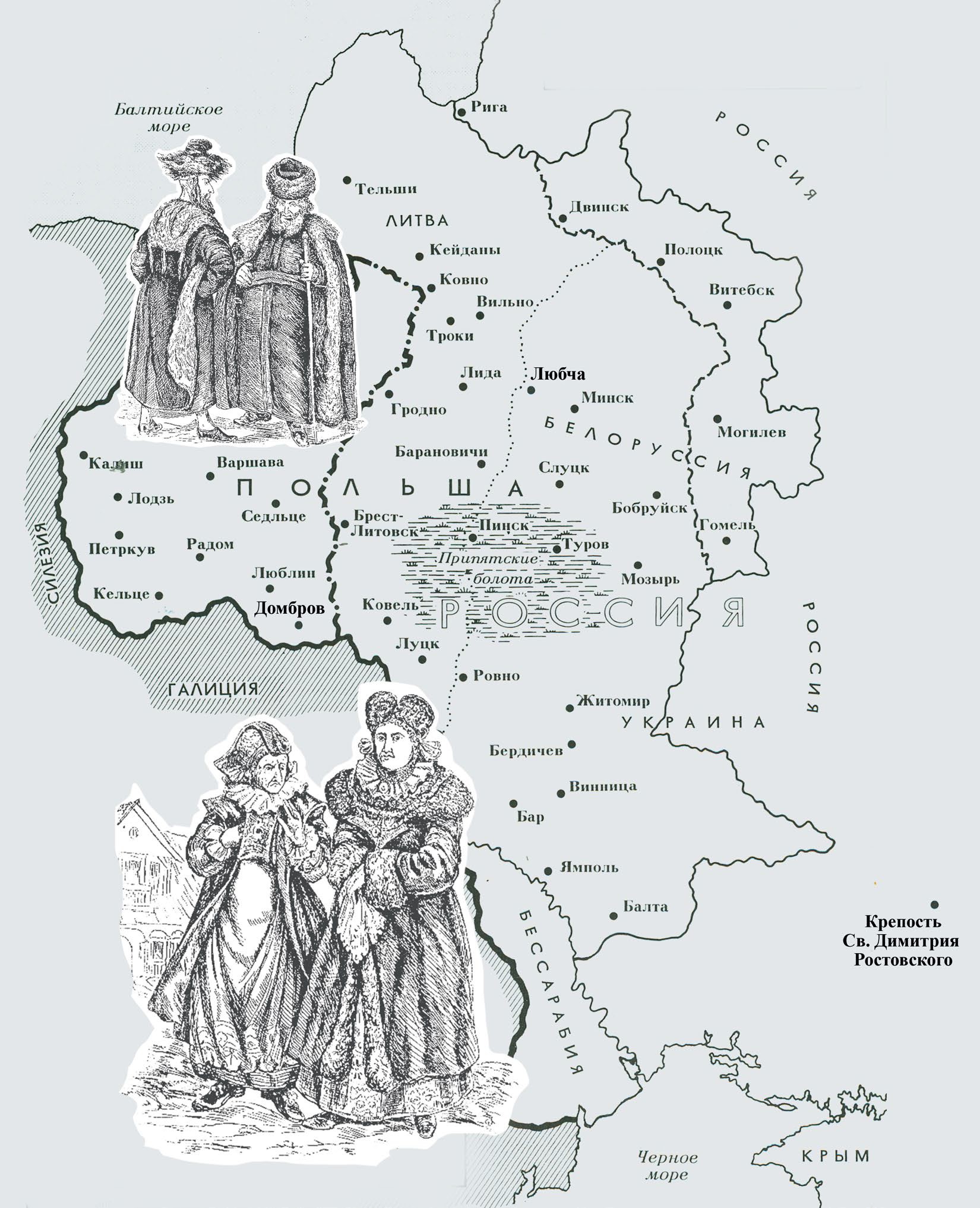 • Города, в которых в 1770 г. были большие, хорошо организованные еврейские общины