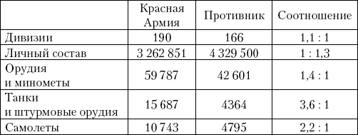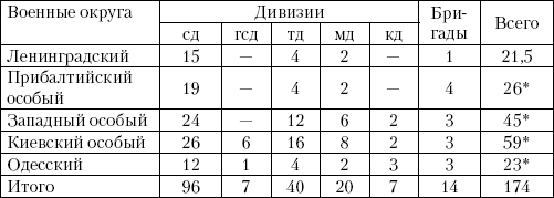 В таблице учтен личный состав сухопутных войск, авиации и погранвойск НКВД. Расчет по штатной численности: Мюллер-Гиллебранд Б. Указ. соч. Т. 2. С. 253–264; Т. 3. С. 269–270; Военно-исторический журнал. 1988. № 7. С. 45; Пограничные войска СССР в годы Второй мировой войны. С. 391–392; Боевой и численный состав Вооруженных Сил СССР в период Великой Отечественной войны. Статистический сборник № 1. С. 16–18; Das Deutsche Reich und der Zweite Weltkrieg. Bd. 4. S. 313.