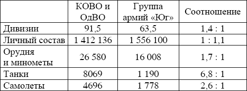 В таблице учтен личный состав только сухопутный войск. Владимирский А. В. На киевском направлении. М., 1989. С. 22–28; 1941 год — уроки и выводы. С. 29, 139; Мюллер-Гиллебранд Б. Указ. соч. Т. 3. С. 269–270.