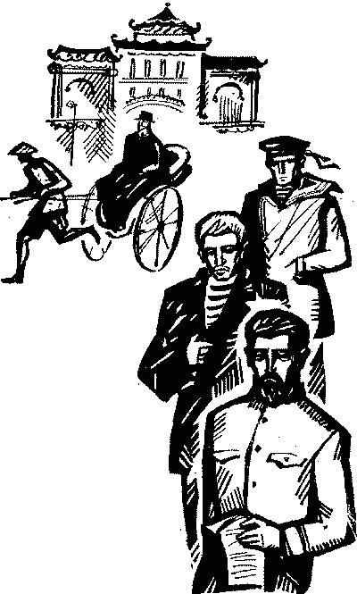 Узнав у швейцара, что его ждут, он с трудом одолел застланную пыльным ковром узкую и крутую лестницу. Когда хозяин номера гостеприимно распахнул перед ним дверь, в нос ударил запах крепкого табака и грязного белья. На покрытом простыней круглом столике, под засиженной мухами люстрой, стояли бутылки водки и смирновской рябиновки, рюмки, тарелка с бутербродами, блюдечко с икрой. На подоконнике выходящего во двор давно не мытого окна – пустая бутылка с воткнутым в горлышко огарком: после полуночи электрическое освещение выключалось. У столика на скрипучем венском стуле сидел Купцов, грузный блондин средних лет в просторном, неряшливом костюме. В кресле, стоявшем у окна, расположился Полговской, почти старик, седой и сухощавый, с крашеными усами и маленькой эспаньолкой. На его угреватом носу блестело золотой оправой пенсне. Одет он был в синий морской китель, шею его подпирал старомодный