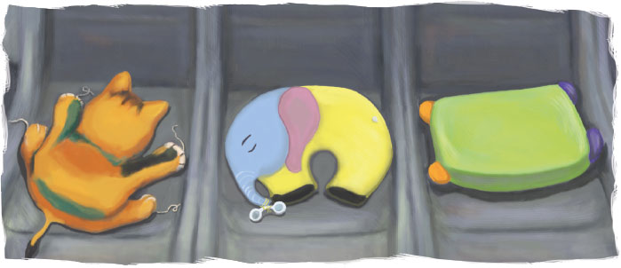Когда сборы закончились и семья отправилась в путь, все трое удобно расположились на своих подушках и продремали до самого конца пути.