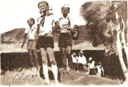После заголовка в глаза бросался огромный рисунок. На нем был изображен мальчишка с шишкастой головой. На шее у него был повязан галстук, по крайней мере со столовую скатерть. Напротив парнишки стояла копнообразная женщина. Копна пожимала правую руку мальчишки, а левой рукой он отдавал салют. Между двумя этими фигурами стояла сумка, из которой, будто головки снарядов, выглядывали десятки булок.
