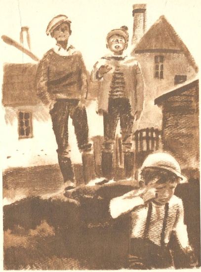 Ребята уже прошли мимо окна. Звонкий голос Виллу и его тревога пугает их. Они быстро оборачиваются.