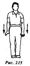 Раскройте кисти обеих рук и опустите их вниз (рис.214,215). Сделайте выдох.