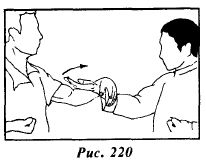 Для этого следует изменить положение рук следующим образом. Из исходного положения (рис.220) партнер слева поднимает локоть левой руки вверх и изменяет положение на Бон Сау (рис.221).