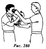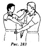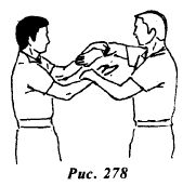 Используя движение Джан Сау, надавите на правую руку оппонента, прижимая ее вниз (рис.280).