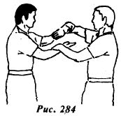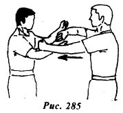 Выполняя базовое упражнение Пун Сау (рис.284), партнер проводит атаку левым кулаком в грудь. Выполните движение Пак Сау правой рукой, нейтрализуя атаку (рис.285).