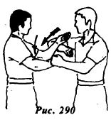 При этом левой рукой продолжайте контролировать левую руку оппонента, удерживая ее посредством захвата (рис.297).
