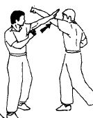 Даже если противник будет атаковать, используя два последующих прямых удара правой и левой рукой (см. рисунки) его вторая атака не достигнет цели. Для подстраховки целесообразно правой рукой выполнить блок Пак Сау, нейтрализуя второй удар противника.