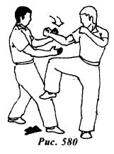 Поднимите левую ногу вверх, сгибая ее в колене и тем самым, блокируя атаку противника (рис.589).