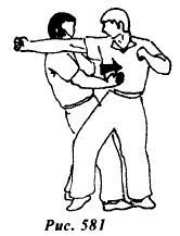 Захватите правую руку противника за запястье и потяните вниз, накладывая ее на его левую руку (рис.591).