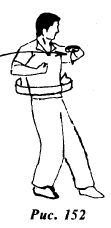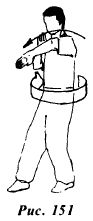 Снова повернитесь налево на 180° располагая согнутую в локте левую руку горизонтально перед грудью ладонью вниз (рис.152).