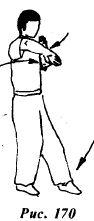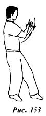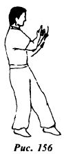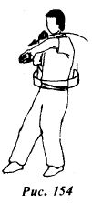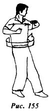 Теперь повернитесь налево на 180°, располагая согнутую в локте левую руку горизонтально перед грудью ладонью вниз (рис.155).