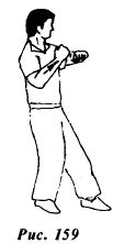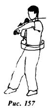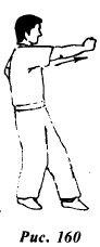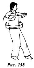 Еще раз повернитесь налево на 180° располагая согнутую в локтевом суставе левую руку горизонтально перед грудью ладонью вниз (рис.158).