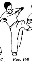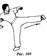 Распрямляя ногу в колене, нанесите боковой удар стопой. Сделайте выдох (рис.169).