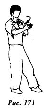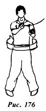 Повернитесь налево на 90° и примите фронтальную стойку. Поместите правую руку перед грудью (рис. 176).