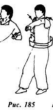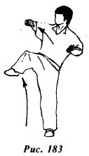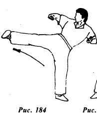 Выпрямляя правую ногу, нанесите боковой удар стопой. Сделайте выдох (рис.184).
