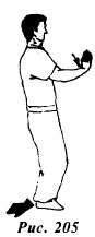 Подшагните правой ногой к левой и поднимите кисти обеих рук пальцами вверх (рис.205).